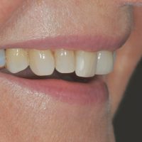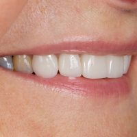 Large restorations on Irma’s front teeth had taken its toll over the years structurally compromising her upper incisors. Porcelain crowns were used to re-establish her incisal edge position, correct the length and position of her incisal length and lighten her teeth to get Irma into the smile she wanted.